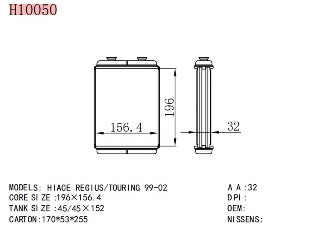 - Применяемость: TOYOTA HIACE REGIUS/TOURING 99-02